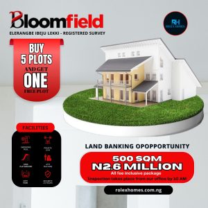 Bloomfield Estate is situated in Elerangbe, Ibeju Lekki, Lagos state. It boasts prominent landmarks including Pan Atlantic University, Epe Resort, the International Cargo Airport, and the proposed 4th Mainland bridge, making it a thriving business environment.